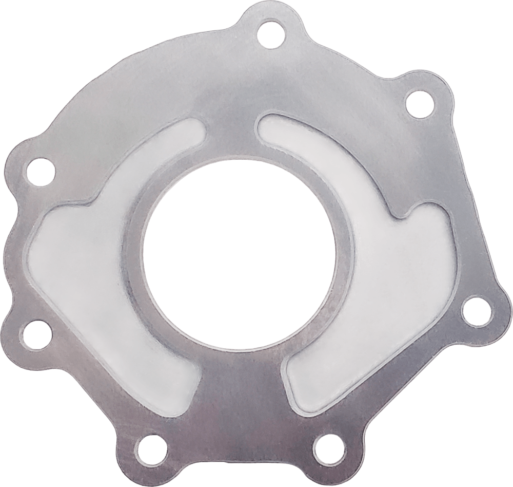 - The plate is cut from billet steel, five times as rigid as aluminum, reducing blow-by and air ingestion